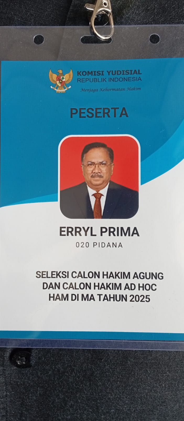 Komisi Yudisial Republik Indonesia sedang melakukan seleksi Hakim Agung dan Calon dan calon Hakim Adhoc HAM di Mahakamah Agung tahun anggaran 2025, beberapa peserta yang mengikuti proses seleksi menjadi hakim yang mulia telah dinyatakan lulus seleksi Administrasi oleh Komisi Yudisial pada tanggal 15 April 2025, dan salah satu peserta yang lulus adalah Dr. H. Erryl Prima Putera Agoes, S.H.,M.H. Purna Adhyaksa yang baru saja selesai pengadiannya di Korp Adhyaksa pada tanggal 01 April 2025 dengan pangkat terakhir Bintang 3 Jaksa utama golongan IV/e.